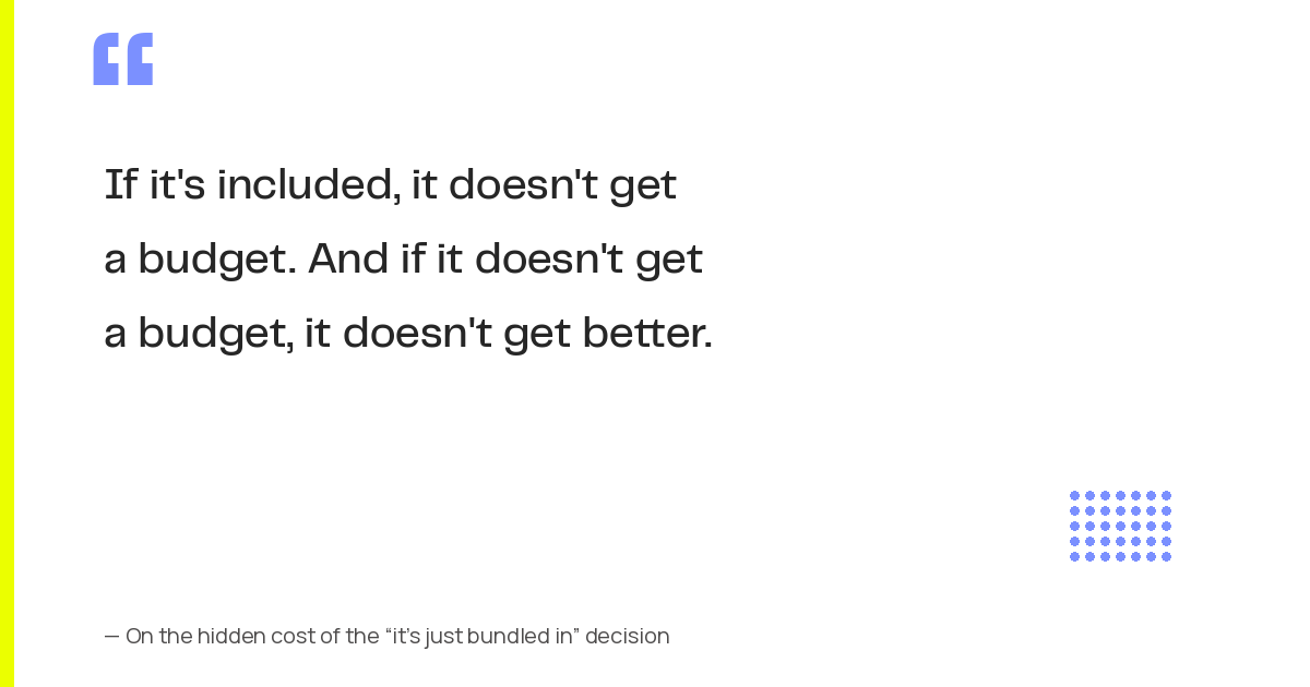 When a feature is bundled in for free? It has none of that. It gets shipped, it works fine, and then it quietly stops evolving while the rest of the product moves forward.