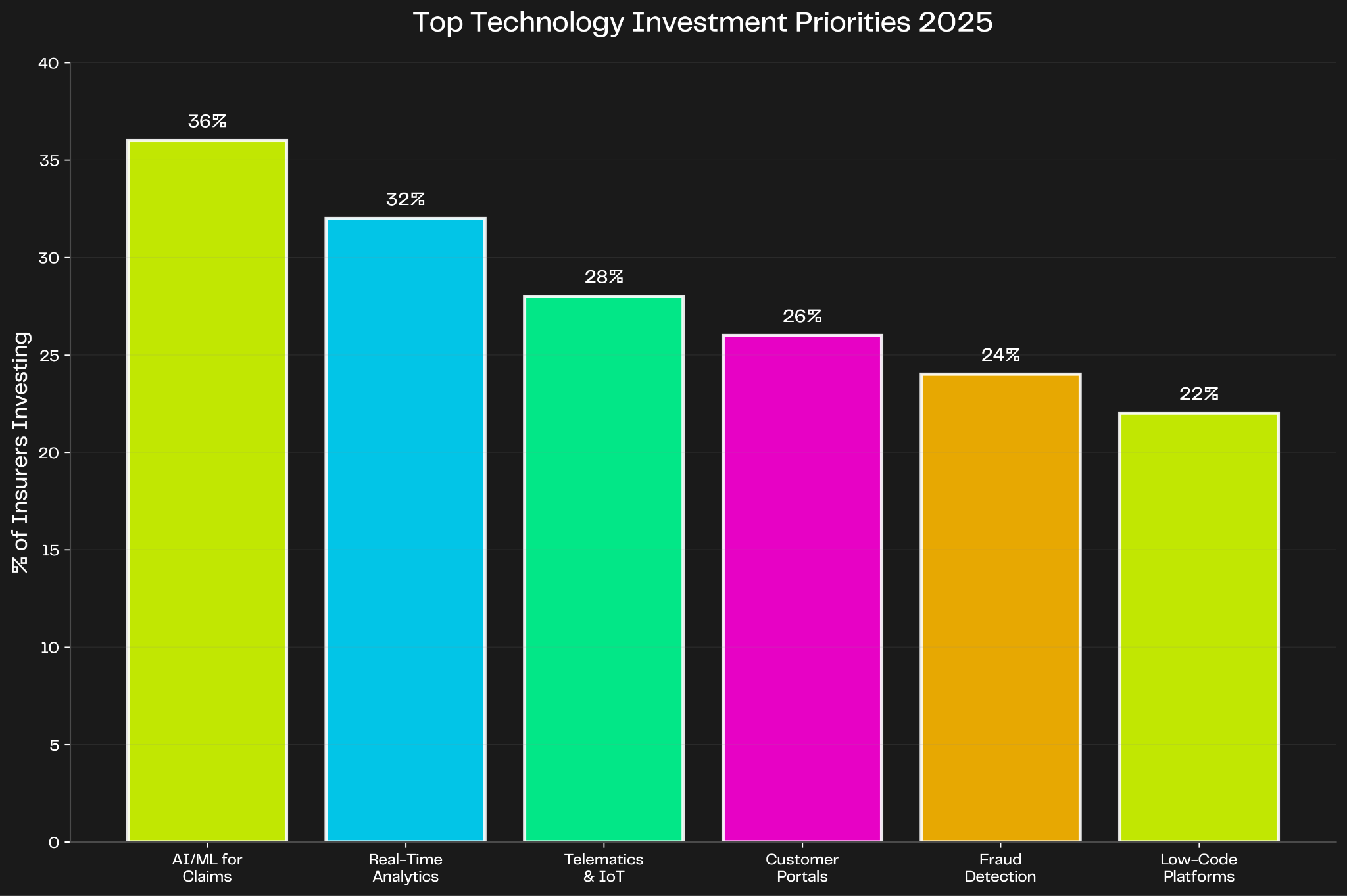 According to surveys of 120+ insurance leaders, the top technology investment priorities for 2025 are: