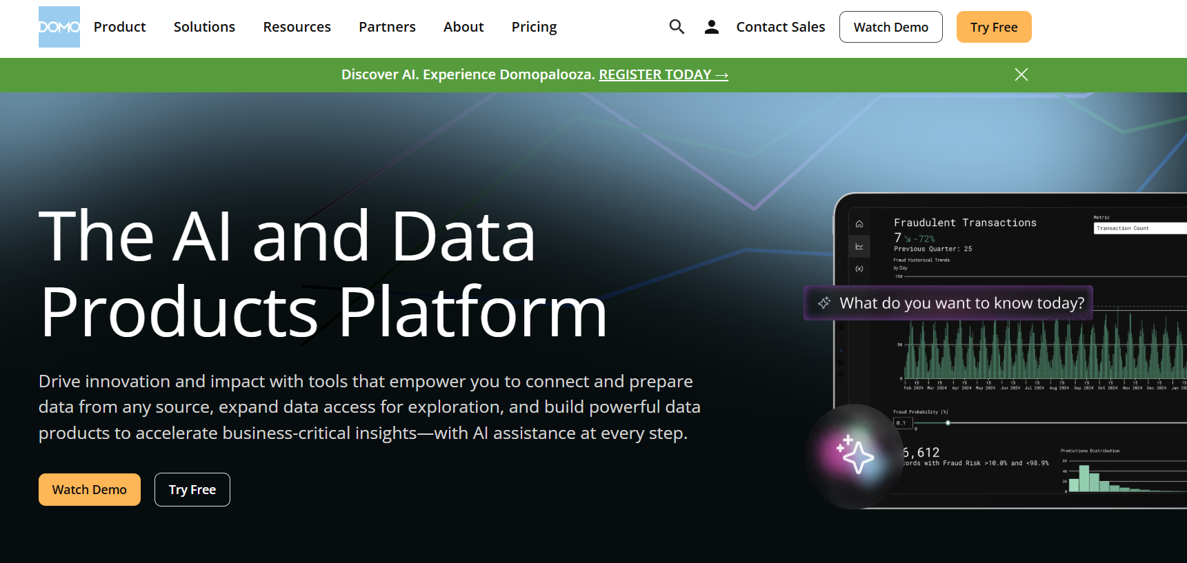 If you’re after a BI tool that has everything in one place, Domo should be on your radar. Data warehouse, ETL, data visualization and real-time data monitoring. Its advanced analytics capabilities make it a solid choice for teams of all sizes and various industries.