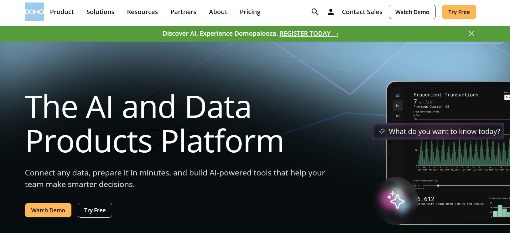 For teams that want all the necessary data analytics tools in one platform, Domo is an excellent option. Data warehouse, ETL, and visualization - you go from raw, unstructured data to actionable insights without leaving your browser tab.