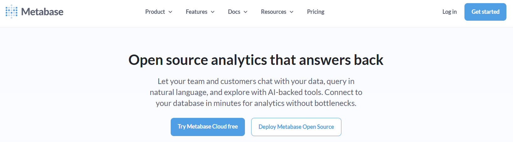 This software for data analytics comes with a drag-and-drop builder, so you can create customizable dashboards without writing code. It’s designed for self-service BI, meaning both technical and non-technical users can generate insights from real-time data. You can also deploy Metabase on-premises or in the cloud, including Google Cloud, making deployment flexible and straightforward.