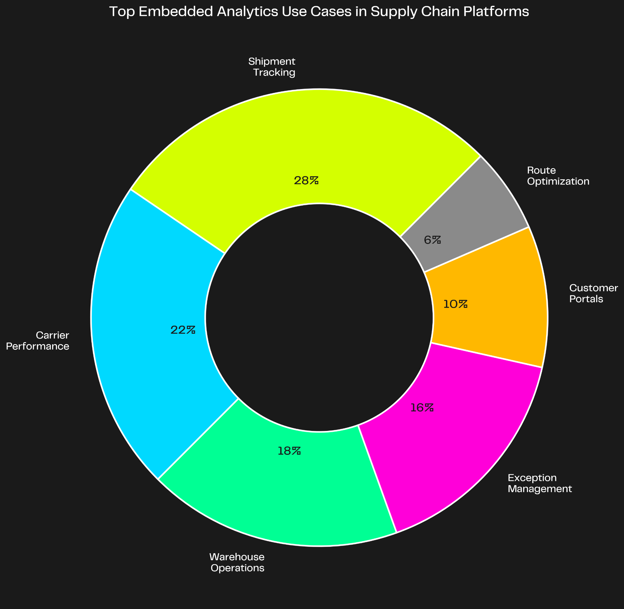 Real-world logistics platforms use embedded analytics for five core use cases. Each addresses a specific customer pain point and reduces manual support burden.