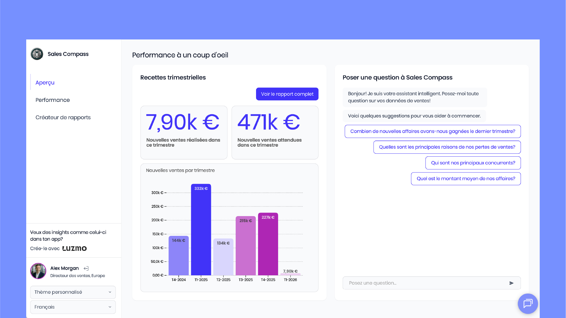 Even with very little set-up, it’s highly customizable. With Luzmo’s role-based access control and dynamic filters, you can tailor dashboards to each user’s permissions, data scope, or job function. Each user sees only what they’re supposed to.